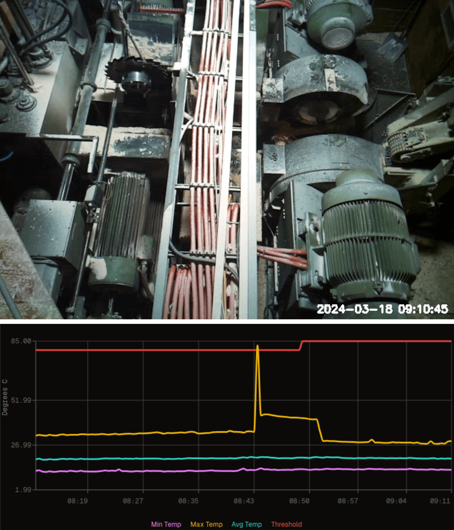 As a brief reminder on how our monitoring system works, our camera systems can sense temperature via the infrared signature of things like motors, gear boxes, belts, and other heat sources.