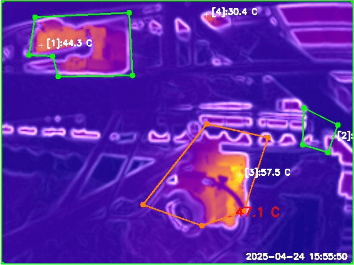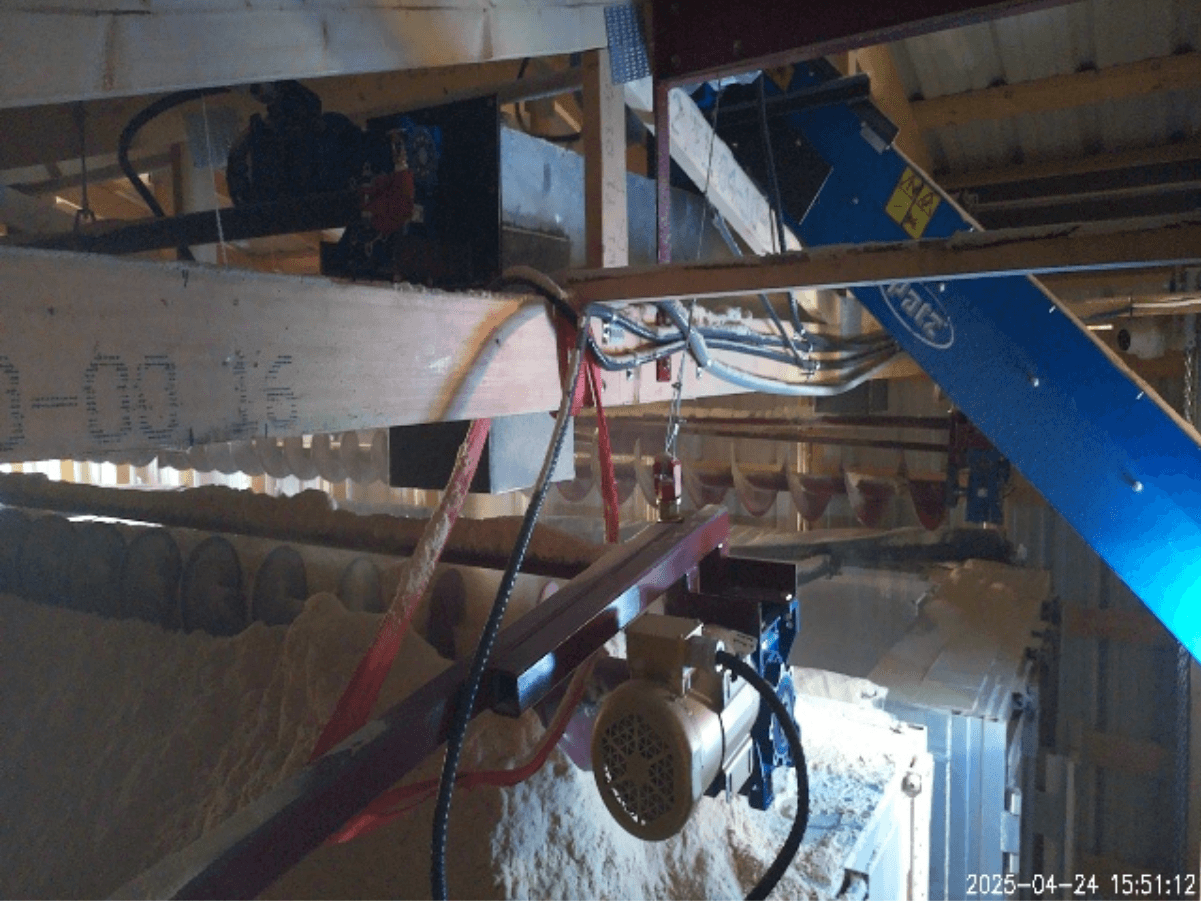One camera was placed inside of the dust shed to monitor 24/7 for temperature irregularities caused by hot embers, overheating motors, or gearboxes. This is an area with extreme risk - large amounts of fine wood dust are stored here.